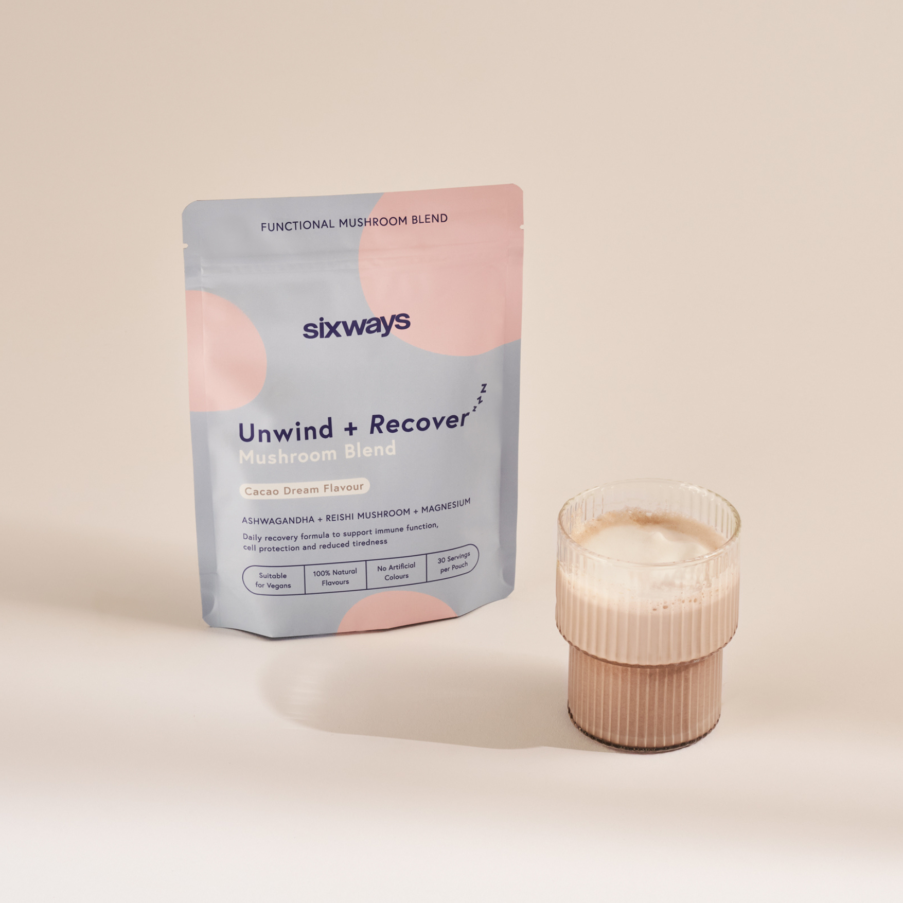 Soothe your mind, encourage deep relaxation and improve your sleep. Whether you're winding down after a long day or preparing for restful sleep, this delicious cacao drink supports stress reduction and cognitive recovery. With key ingredients like Ashwagandha, Reishi Mushroom & Magnesium, iit's your go-to formula for unwinding.